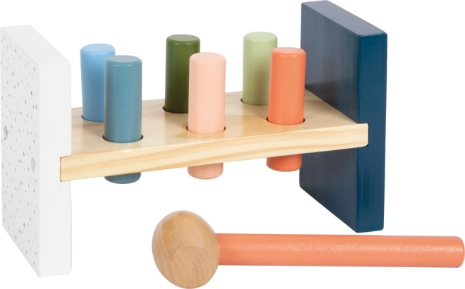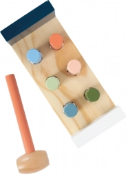 Hra rozvíjí trpělivost, soustředění a posiluje jistotu při úderech. Díky robustnímu provedení a hladkým hranám je bezpečná pro malé dětské ruce, zatímco přírodní vzhled a pastelové barvy skvěle zapadnou do každého dětského pokoje.