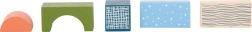 Kostky z 100% FSC dřeva s hladkými hranami jsou příjemné na dotek a vhodné pro malé ruce začínajících stavitelů.