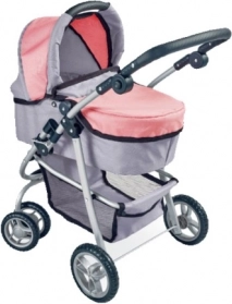 Kočárek nabízí nastavitelnou výšku madla a praktický košík na drobnosti. Otočná přední kolečka zajišťují snadnou ovladatelnost, a díky barevnému provedení se stane stylovým doplňkem.