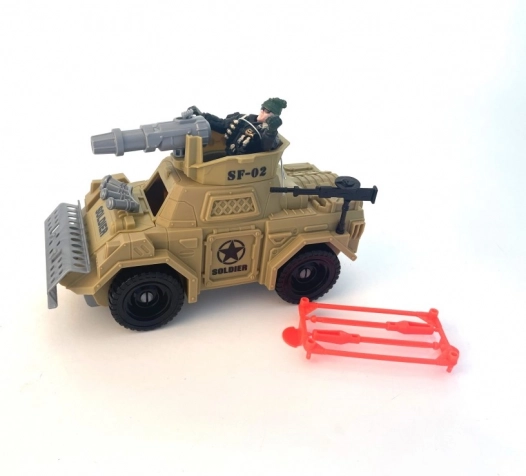 - Obsah balení: vojenské vozidlo, figurka vojáka, příslušenství.