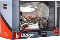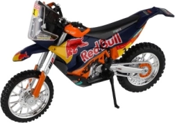 Model závodní motorky BBURAGO v měřítku 1:18 věrně zobrazuje design RED BULL KTM z Rally Dakar 2019 – včetně výrazného oranžovo-modrého lakování, log a závodních prvků. Díky kombinaci kovových a plastových dílů působí robustně a zároveň si zachovává precizní zpracování.