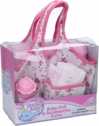 Praktický set doplňků pro panenky, který dětem usnadní hry na maminku i tatínka. Balení obsahuje vše potřebné pro každodenní péči – taštičku na příslušenství, plenku, lahvičku, látkovou plenku a podložku na přebalování.