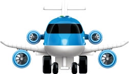 Objevte zábavu na zemi i ve vzduchu. Velké letadlo s efekty je připravené na akci – po stisknutí čtyř tlačítek na přídi se aktivují světelné a zvukové efekty, které umocní realistický zážitek z letu. Díky setrvačníku se letadlo hladce rozjede po podlaze a s otevíratelnou zadní rampou snadno naložíte i vyložíte autíčka.