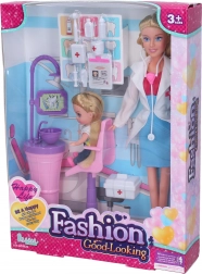 V balení najdete panenku zubařku, malou panenku holčičku a příslušenství včetně vybavení zubařské ordinace a lékařských potřeb. Díky detailnímu zpracování a velikosti 29 cm se skvěle drží a kombinuje s dalšími doplňky.