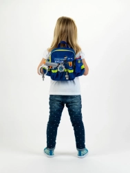 Nastavitelné popruhy, vícero kapes a vnitřní podšívka s policejním motivem usnadňují organizaci a přenášení celé sady.