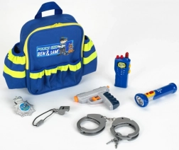 - Kompletní policejní výbava: batůžek, svítilna, vysílačka, píšťalka, odznak, pouta, vodní pistole.