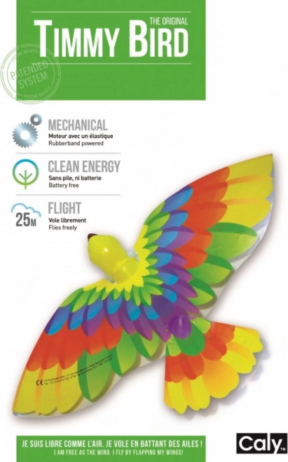 Ptáček Timmy se stal symbolem volnosti a hravosti pro děti již více než 50 let. Je poháněn jednoduchým gumovým natahovacím mechanismem, což znamená, že nepotřebuje žádné baterie. Jednoduché utažení klikou vám umožní natáhnout gumičku až 50krát, což rozpohybuje pevná a odolná křídla ptáčka.