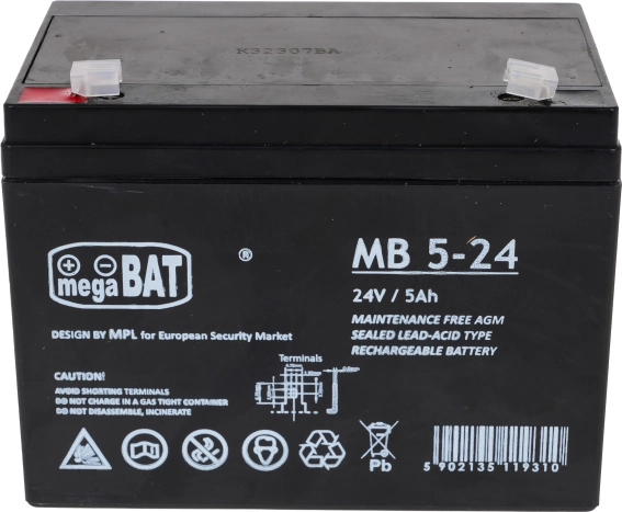 Dobíjecí baterie megaBAT 24V/5Ah je navržena pro maximální bezpečnost a pohodlí. Vyniká spolehlivostí a dlouhou životností díky bezúdržbové AGM technologii. Je ideálním řešením pro napájení širokého spektra dětských elektrických vozidel.