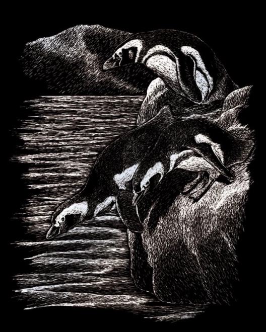 Vhodné pro děti od 8 let. Škrabací pero má ostrý hrot, doporučujeme dozor dospělého u mladších dětí.