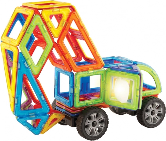 Materiály splňují nejpřísnější bezpečnostní normy, dílky jsou velké, odolné a prakticky nerozbitné. Nová kolečka lze propojit háčkem na nápravě pro pevná a funkční vozidla. LED lucerna se napájí baterií CR2032 (součást balení), kterou lze snadno vyměnit. Stavebnici lze dobře kombinovat s GEOMAG pro ještě bohatší možnosti stavění.