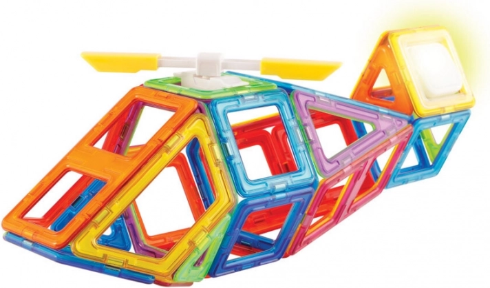 Stavebnice MAGFORMERS Dynamic Flash přináší dětem bezpočet možností k tvorbě díky 54 magnetickým dílkům v osvědčených tvarech. Integrovaná otočná LED lucerna s více režimy rozzáří každý model – od policejních aut přes stavební stroje až po helikoptéry s novou roztažitelnou vrtulí. Díky snadnému spojování magnetických prvků děti rychle staví stabilní konstrukce a objevují základy 3D tvoření.