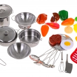 Objevte dětský kuchyňský set, který zahrnuje různé nerezové nádobí a plastové potravinové napodobeniny. Je ideální pro simulaci skutečného vaření a pomáhá dětem rozvíjet kreativitu a hraní rolí. Tento set je skvělým doplňkem k oblíbeným hrám na obchod, kuchyň nebo domácnost.