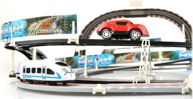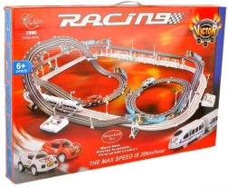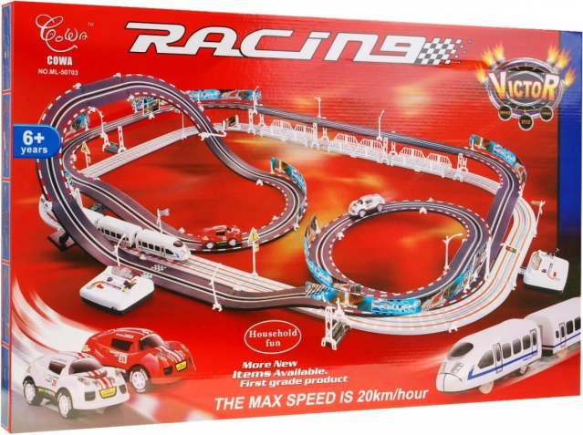Tato obrovská závodní dráha 2v1 přináší vzrušení ze závodu přímo do vašeho domova. Vytvořena pro děti starší 6 let, nabízí ostré zatáčky, serpentýny a přímé úseky dráhy, které poskytnou maximální zábavu. S rychlostí až 20 km/h mohou auta a vlaky bez kolizí závodit na svých trasách.