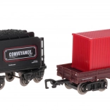 - lokomotiva, vagón s uhlím, vagón s kontejnerem, vagón pro zvířata