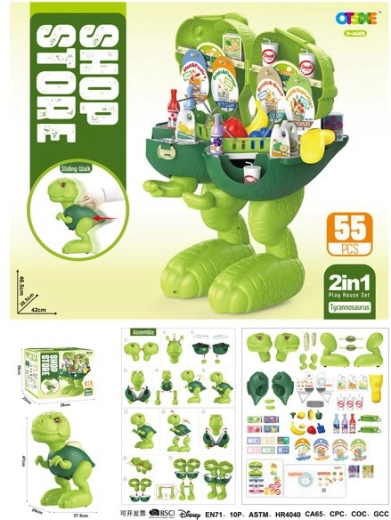 Snadno přeměníte dinosaura v obchod, poskytující dvojí zábavu a vzdělání. Děti si mohou hrát s dinosaury a současně vytvářet nákupy v malém obchodě.