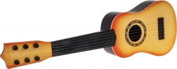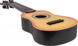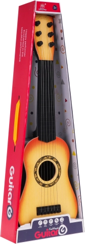 Tato dětská kytara je skvělou volbou pro první krůčky do světa hudby. Díky šesti kovovým strunám a funkčním kolíkům nabízí zvuk blízký klasické kytaře, takže si děti snadno osvojí rytmus, koordinaci i základní techniky hry.