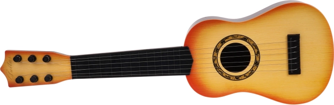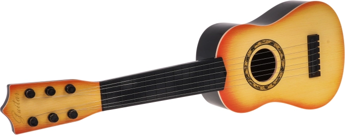 Stylová dětská klasická kytara ve světlém hnědém odstínu potěší malé hudebníky od 3 let. Má 6 kovových strun, ladicí kolíky a věrně napodobuje skutečný nástroj. Lehká a odolná konstrukce z plastu se strukturou dřeva zajišťuje bezpečné a pohodlné hraní.