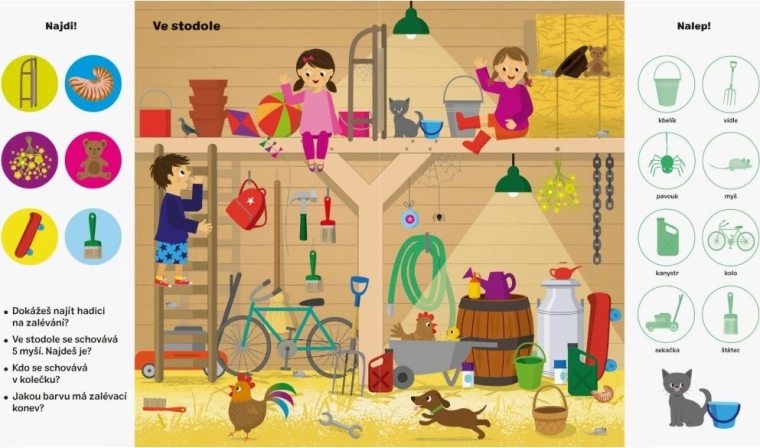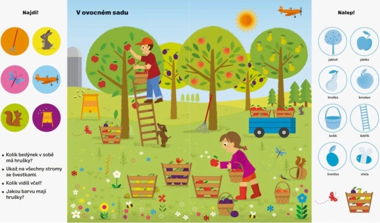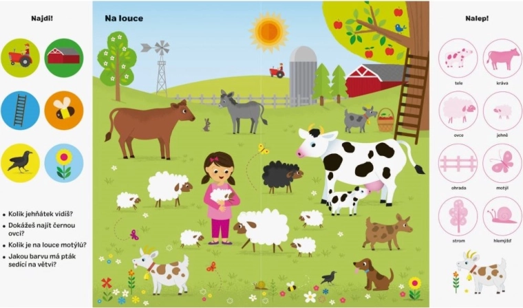 Objevte svět farmy s interaktivním sešitem, který děti provede hledáním obrázků, odpovídáním na otázky a doplňováním samolepek na správná místa. Každá dvojstrana je plná předmětů a zvířat z farmy, díky nimž si děti upevní pojmy a naučí se nová slova.