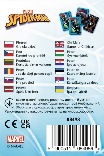 Hledejte shodné dvojice s hrdiny ze světa SPIDERMAN a zbavte se všech karet dřív než ostatní. Balíček obsahuje 25 karet (12 párů + 1 Černý Petr), takže vás čeká spousta napětí a smíchu při každém tahu. Hra má rychlé kolo, takže je ideální na krátké pauzy i delší hraní s rodinou.