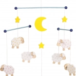 Jedinečný dřevěný kolotoč od firmy Goki je ideální dekorací nad postýlku každého miminka. Ověšený roztomilými ovečkami a měsícem poskytne uklidňující atmosféru pro spánek vašeho dítěte.