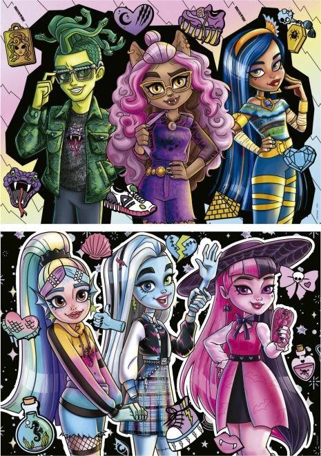 Užijte si zábavu s dvojbalením puzzle EDUCA s motivem MONSTER HIGH. Balení obsahuje 2 puzzle po 100 dílcích se stejným rozměrem a kvalitním zpracováním. Ideální pro děti i fanoušky série, kteří si chtějí procvičit trpělivost a postřeh.