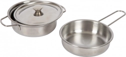 Součástí jsou pánev, hrnec s poklicí, kleště, obracečka, kuchyňská utěrka a 2 kartonové archy s potravinami. Nic nebrání malým kuchařům v kreativitě.