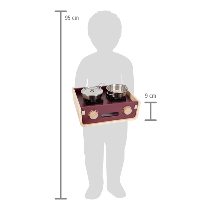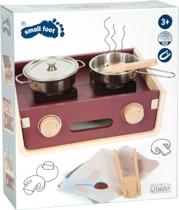 Tento multifunkční dřevěný kempingový sporák SMALL FOOT je navržen pro maximální zábavu a rozvoj dovedností. Děti mohou střídat vaření, pečení, grilování i mytí díky oboustranné konstrukci, kde vrchní i spodní díl slouží jako vařič nebo umyvadlo. Kvalitní dřevo v kombinaci s kovem a textiliemi zaručuje odolnost a dlouhou životnost.