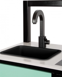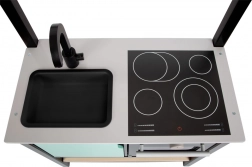 Pro maximální herní zážitek nechybí vodovodní kohoutek s pákou pro regulaci „teploty“, odnímatelný plastový dřez na „mytí nádobí“ ani trouba s vyjímatelným plechem. Dno police lze využít jako grilovací rošt. Skříňka pod pracovní plochou a háčky na náčiní udrží pořádek, přičemž levou část skříňky lze hravě proměnit na „ledničku“ nebo „myčku“.