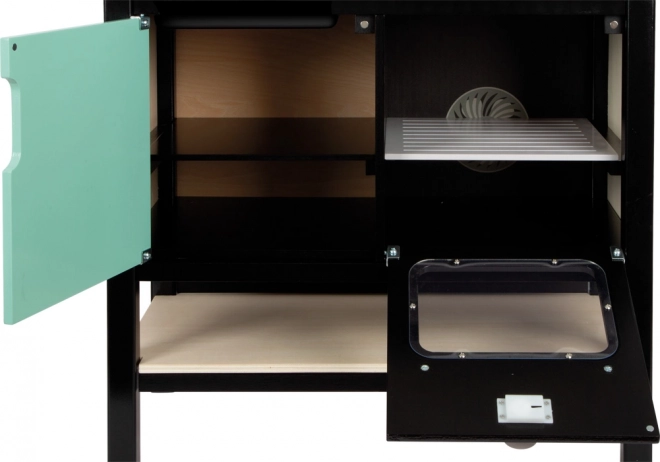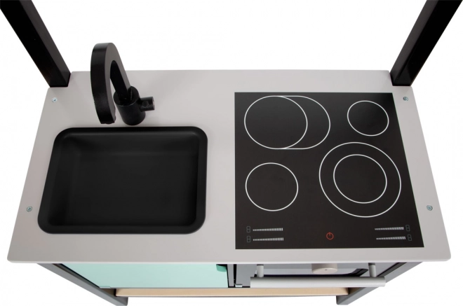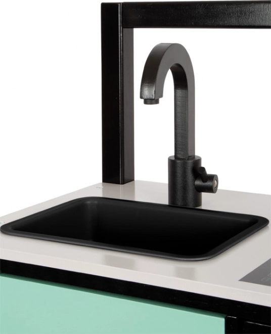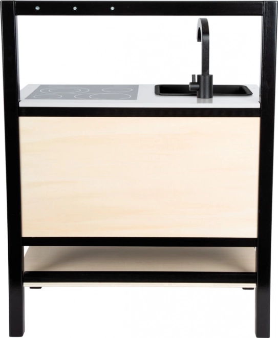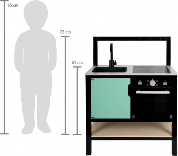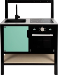 Tato vizuálně atraktivní dětská kuchyňka přináší moderní industriální vzhled, který zaujme v každém dětském pokoji. Lehká, ale stabilní konstrukce s černým rámem umožňuje snadné přemísťování, takže lze rychle měnit místo hry. Realistické ovladače, ilustrované spotřebiče a funkční prvky podněcují představivost a podporují samostatnou hru.