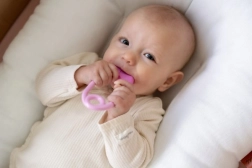Malé kuličky uvnitř hračky jemně chrastí, což dodává audio-vizuální stimulaci, důležitou pro vývoj dítěte.