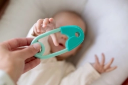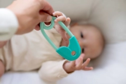 Velké a zaoblené hrany špendlíku zajišťují, že je hračka zcela bezpečná pro použití již od narození.