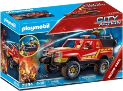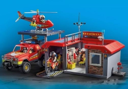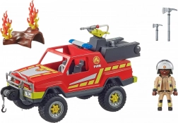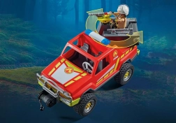 Kdekoli vypukne požár, hasičský sbor PLAYMOBIL je se svým hasičským a záchranářským vozem okamžitě na místě. Sotva dorazí na místo, stříkací jednotka v zadní části je okamžitě připravena a vyráží hasit požár. Díky dlouhému dosahu rotující stříkací jednotky má hasič zdroj požáru v mžiku pod kontrolou. To se podařilo právě včas. Sada obsahuje hasiče, hasičské auto s navijákem a hákem na přívěs, kládu s plameny, hasičskou helmu a mnoho dalších doplňků. Vozidlo nabízí prostor pro dvě figurky. Zadní stříkačka je funkční a lze ji otočit o 180°. Pro naplnění se nádrž čerpadla odejme, naplní vodou a poté se připojí k hadici a znovu připevní k rukojeti. Takto se dá na pochod s vodou!"
