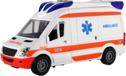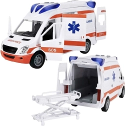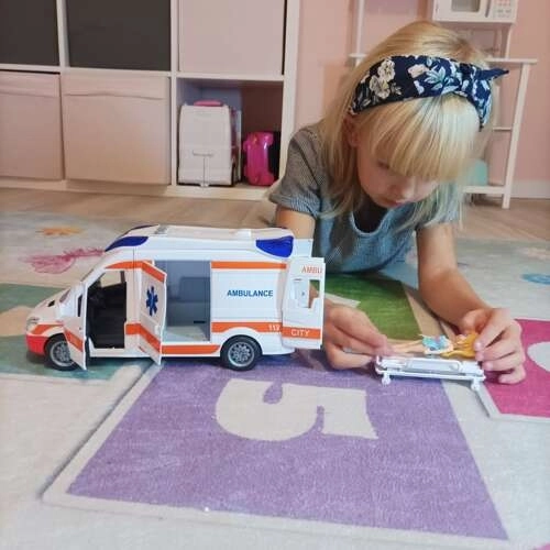 Tato plastová sanitka věrně napodobuje skutečné záchranné vozidlo – od potisku až po funkce. Děti potěší tři tlačítka na střeše pro aktivaci světel a sirén, zatímco otevírací přední, boční i zadní dveře zpřístupní detailní interiér. Součástí je skládací a výsuvná lehátka, se kterými lze pacienta snadno „naložit“ do vozu.