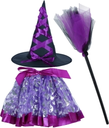 Oblékněte své dítě do této okouzlující sady čarodějnického kostýmu, která obsahuje dekorativní klobouk, fialovou sukni s elastickým pasem a unikátní koště. Tento kostým se skvěle hodí na školní karnevaly, tematické akce nebo jen tak na doma pro každodenní zábavu.