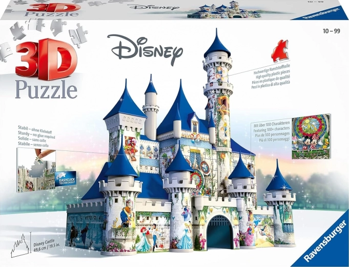Postavte si vlastní pohádkový palác s 3D puzzle RAVENSBURGER a užijte si jedinečnou kombinaci skládání a modelářství. Díky speciálním plastovým dílkům s technologií EasyClick stavba pevně drží bez lepidla, na stěnách najdete více než 100 postaviček DISNEY a hotový model se stane okouzlující dekorací dětského pokoje.