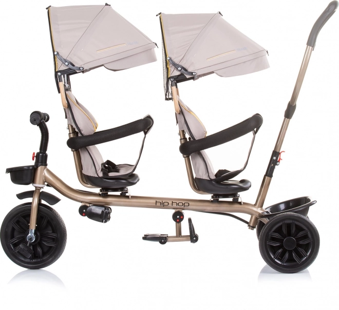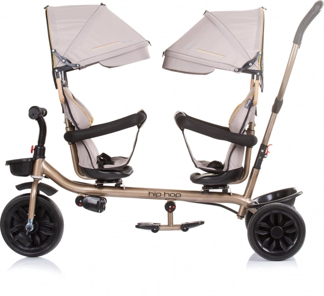 Tato chytrá tříkolka pro dvojčata kombinuje zábavu, pohodlí a bezpečnost. Přední sedadlo lze nastavit po směru jízdy nebo proti sobě, aby děti mohly komunikovat tváří v tvář. Otočná sedadla o 360° a polohovatelné opěrky nohou zajistí pohodlnou pozici pro různý věk i výšku dětí.