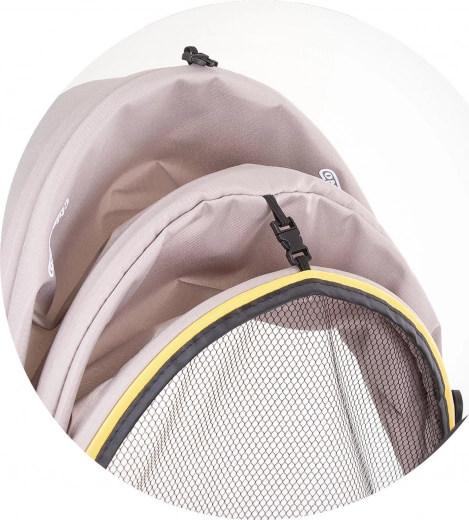 Dvě velké skládací stříšky se slunečními clonami a měkké potahy sedadel zajistí stín, pohodlí a příjemnou jízdu po celý den.