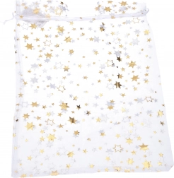 Tento vánoční sáček z organzy je perfektní volbou pro stylové balení malých dárků. Díky svému průsvitnému designu s motivem hvězd přidává eleganci a slavnostnost každému dárku. Vyberte si mezi zlatým nebo stříbrným provedením a ozdobte vaše Vánoce s elegancí.