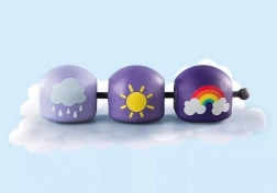 - Číselné potisky 1–3, motivy počasí (slunce, déšť, duha)