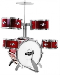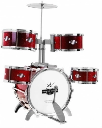 Sestava obsahuje vše, co dítě potřebuje k začátkům s hudbou – pěti bubnový set s talířem a paličkami.
