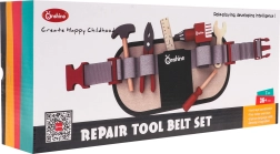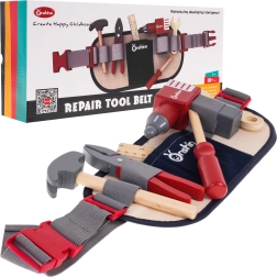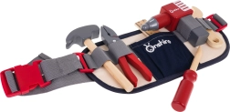 Sada dřevěného nářadí s opaskem je perfektní pro každého malého kutila již od 3 let. Obsahuje dřevěné nástroje jako kladivo, kleště, vrtačku, šroubovák, měřítko a plochý klíč, které jsou bezpečné a odolné.