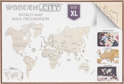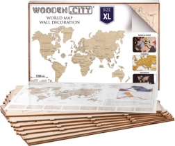 Tato dřevěná mapa světa XL od WOODEN CITY je vyrobena v EU z kvalitní březové překližky a vyznačuje se přesným laserovým řezem. V balení najdete vše potřebné pro rychlou a čistou montáž na zeď – včetně oboustranné pásky a obrázkového návodu. Velkorysý formát 120 × 80 cm se stane nepřehlédnutelnou dominantou místnosti.
