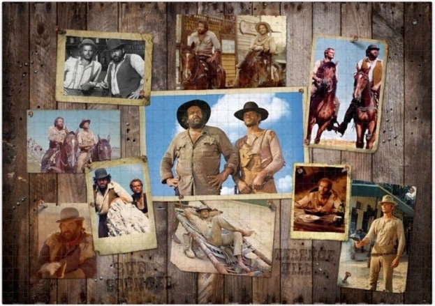 Puzzle Bud Spencer & Terence Hill: Western je skvělým způsobem, jak si připomenout nezapomenutelné filmové scény. Skládanka obsahuje 1000 dílků a rozměry 68 x 48 cm po sestavení poskytují dostatečný prostor pro detailní zachycení ikonických momentů. Po dokončení slouží jako krásná dekorace na stěnu, která oživí Vaše vzpomínky.