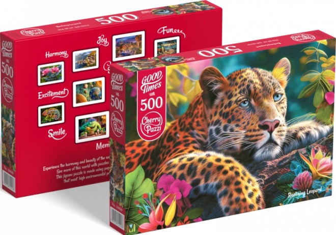 Puzzle CHERRY PAZZI s motivem ležícího leoparda vás uchvátí svou detailností a kvalitou. Skládačka se skládá z 500 dílků, a je ideálním způsobem, jak strávit volný čas a procvičit si trpělivost.