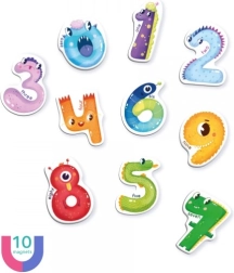 Každý magnet zobrazuje číslice a jejich název v angličtině, což pomáhá dětem osvojit si slovní zásobu rychle a efektivně.