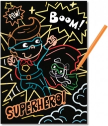 Škrabací obrázek DODO se superhrdinou je ideální volbou pro děti, které milují tvoření a barvy. Stačí sledovat předtištěné linie a škrabacím perem postupně odhalovat zářivý podklad – výsledkem je originální obrázek, který potěší i jako dekorace.