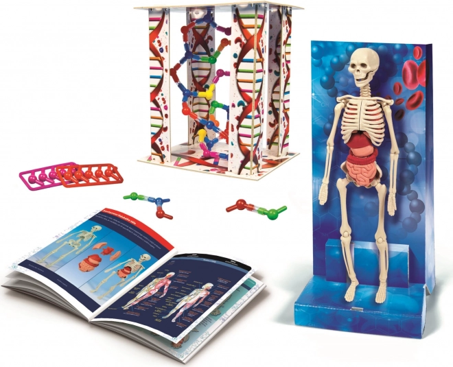 Uchvacující sada pro děti, která jim pomůže objevovat záhady lidské anatomie. Sestavte realistický model kostry a orgánů, včetně DNA dvojité spirály.