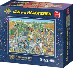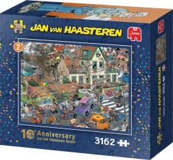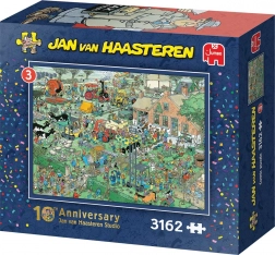 Oslavte 10 let studia JAN VAN HAASTEREN s unikátním, sběratelským puzzle v luxusní krabici o celkovém počtu 30 200 dílků a působivé délce 6 metrů. Deset samostatných puzzle po 3162 dílcích vytvoří dohromady velkoformátovou scénu plnou vtipných detailů a ikonických motivů, které milují fanoušci po celém světě. Součástí jubilejní limitované edice je navíc 10 plakátů A3 s jednotlivými motivy.
