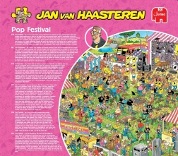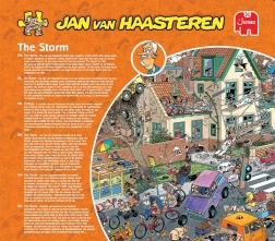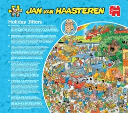 Vstupte do světa plného absurdního humoru a barevných scén s legendární sérií JAN VAN HAASTEREN. Každé z deseti puzzle je samostatně balené a po složení do sebe dokonale zapadne v jeden velkolepý obraz s tisíci drobnými gagy. Hledejte typické prvky jako žraločí ploutev, toulající se ruce, zubní protézu, Mikuláše i autorův autoportrét.