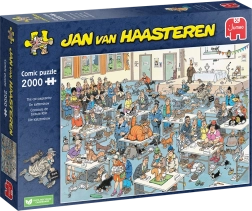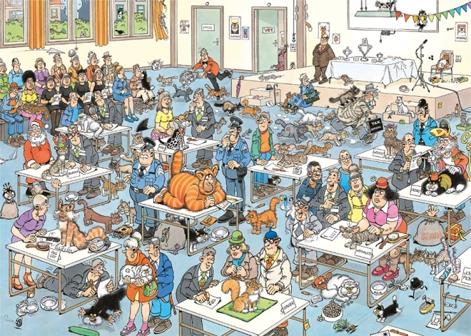 Užijte si hodiny zábavy s velkoformátovým puzzle od autora Jan van Haasteren. Ilustrace „Kočičí přehlídka“ nabízí 2000 dílků plných barevných detailů, humoru a typických skrytých motivů, jako je žraločí ploutev či toulající se ruce. Sestavený obraz má rozměr cca 98 × 68 cm a potěší každého milovníka vtipných a detailních obrázků.